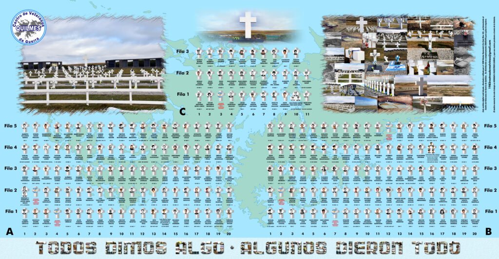 Fila A Agrupa a la primera parte de los caídos en Malvinas según el orden en que fueron dispuestos en el mural.